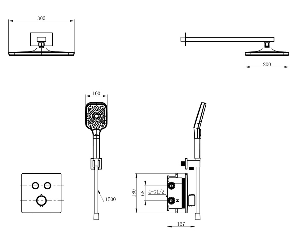 - Размер верхнего душа 300x200 мм