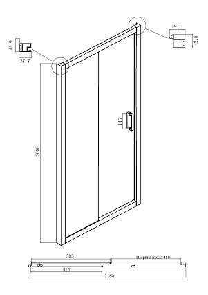 - Ширина входа: 480 мм