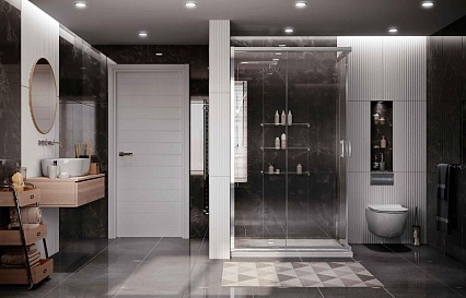 - Исполнение полотна двери: прозрачное закаленное стекло, толщиной 6 мм