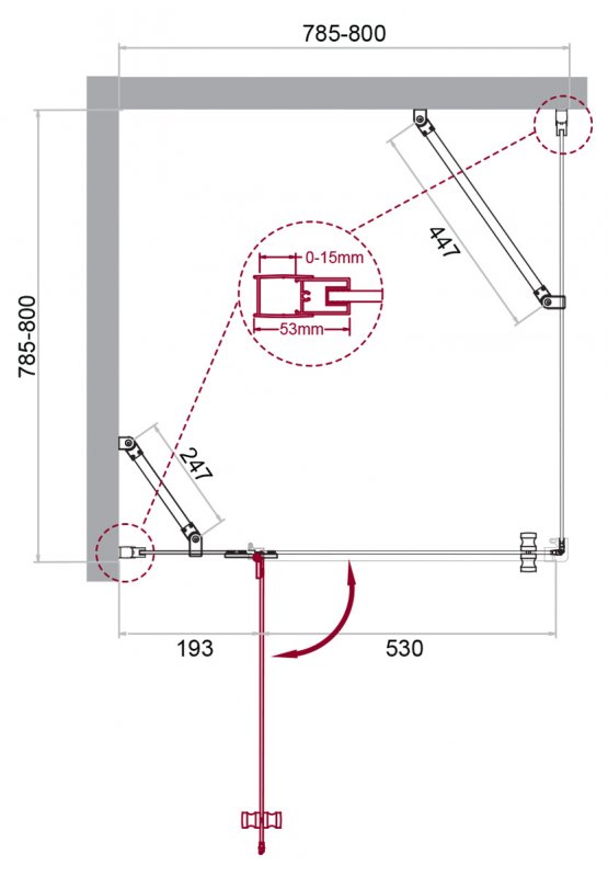 - Габариты с регулировками, мм (785-800)x(785-800)x1950