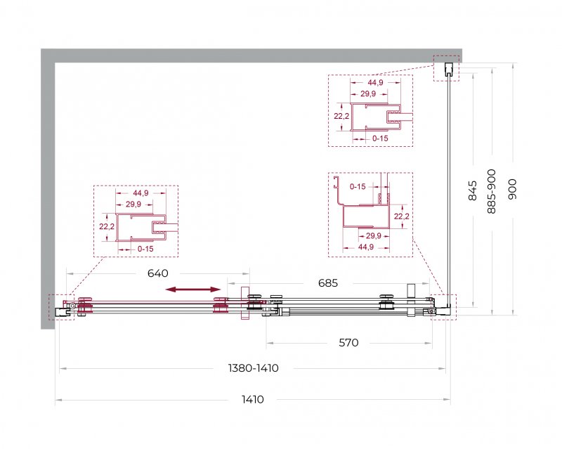 - Габариты с диапазоном регулировок, мм (1380-1410)х(885-900)x1950