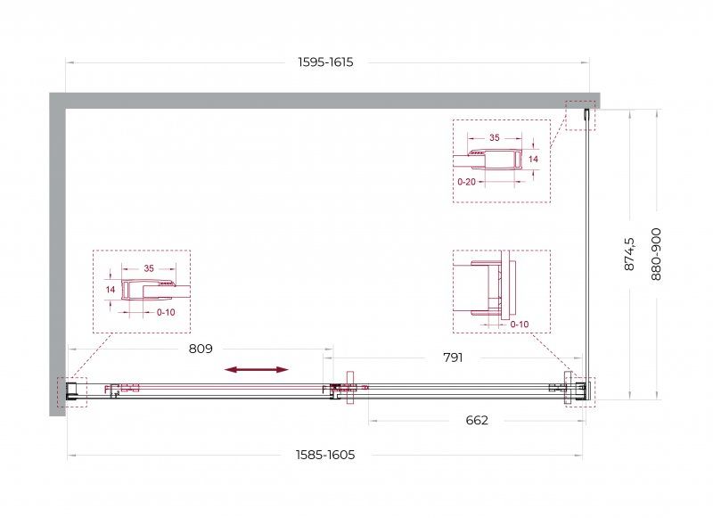 - Габариты с диапазоном регулировок (1585-1605)x(880-900)x2000 мм