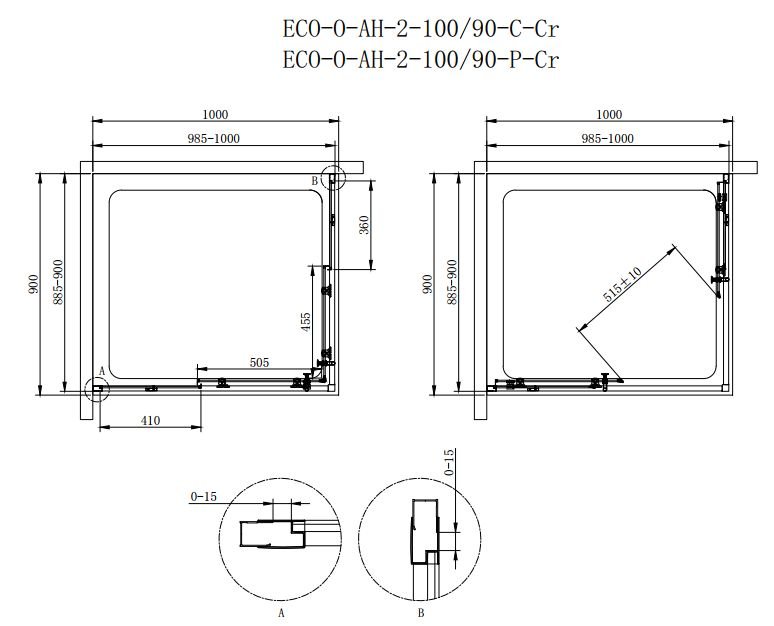 Душевой уголок Cezares Eco ECO-O-AH-2-100/90-C-Cr 100x90 с прозрачными стеклами и двумя раздвижными дверями