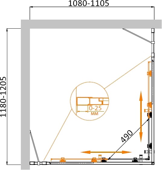 - Габариты с диапазоном регулировок (1180-1205)x(1080-1105)х1950 мм