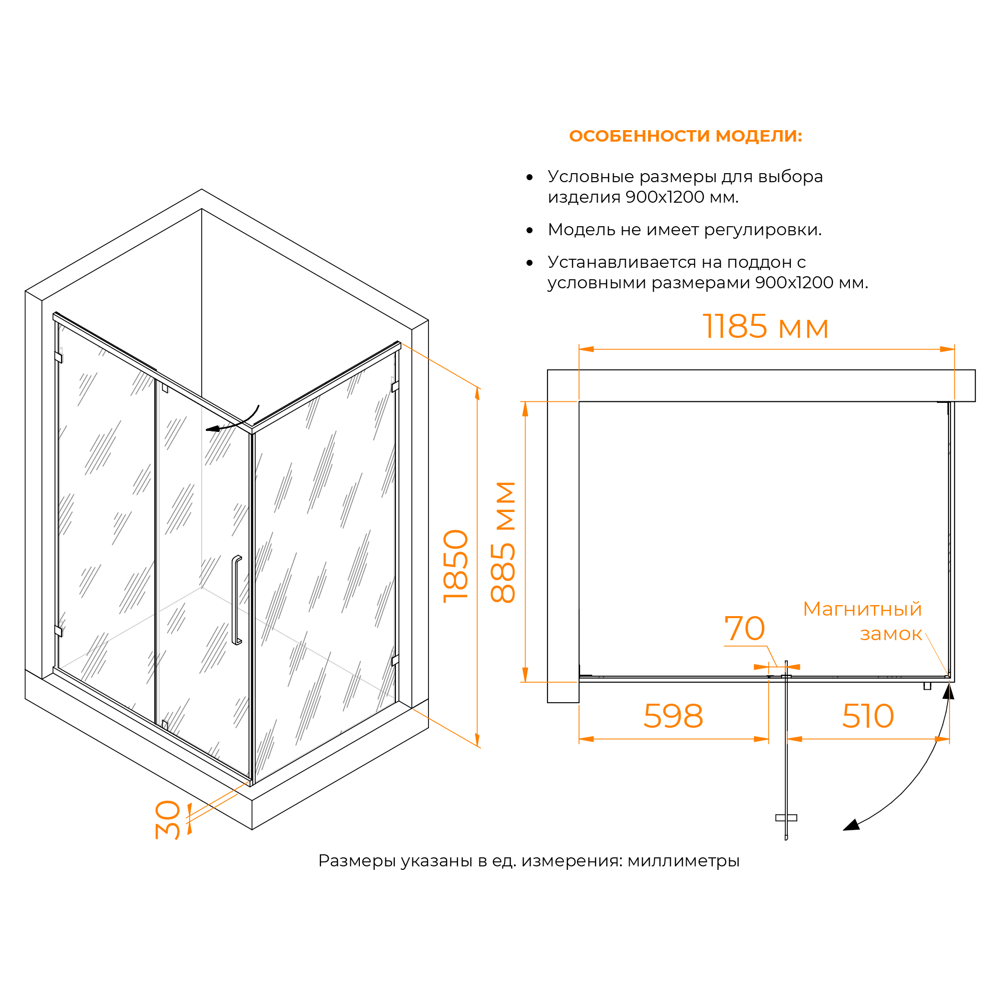 - Толщина стекла: 6 мм