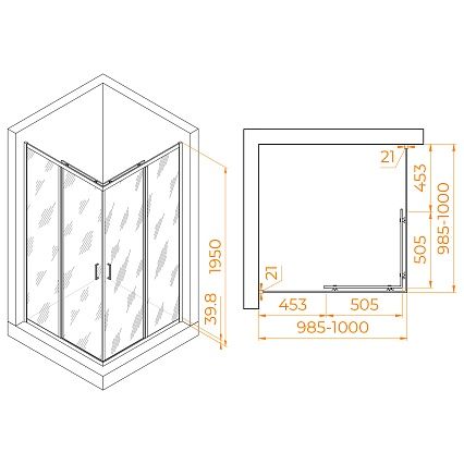 Высота душевого уголка составляет 1950 мм, что позволяет использовать его даже для людей высокого роста. Стойки и рама изготовлены из анодированного алюминия, для предотвращения коррозии и сохранения привлекательного внешнего вида на долгие годы.
