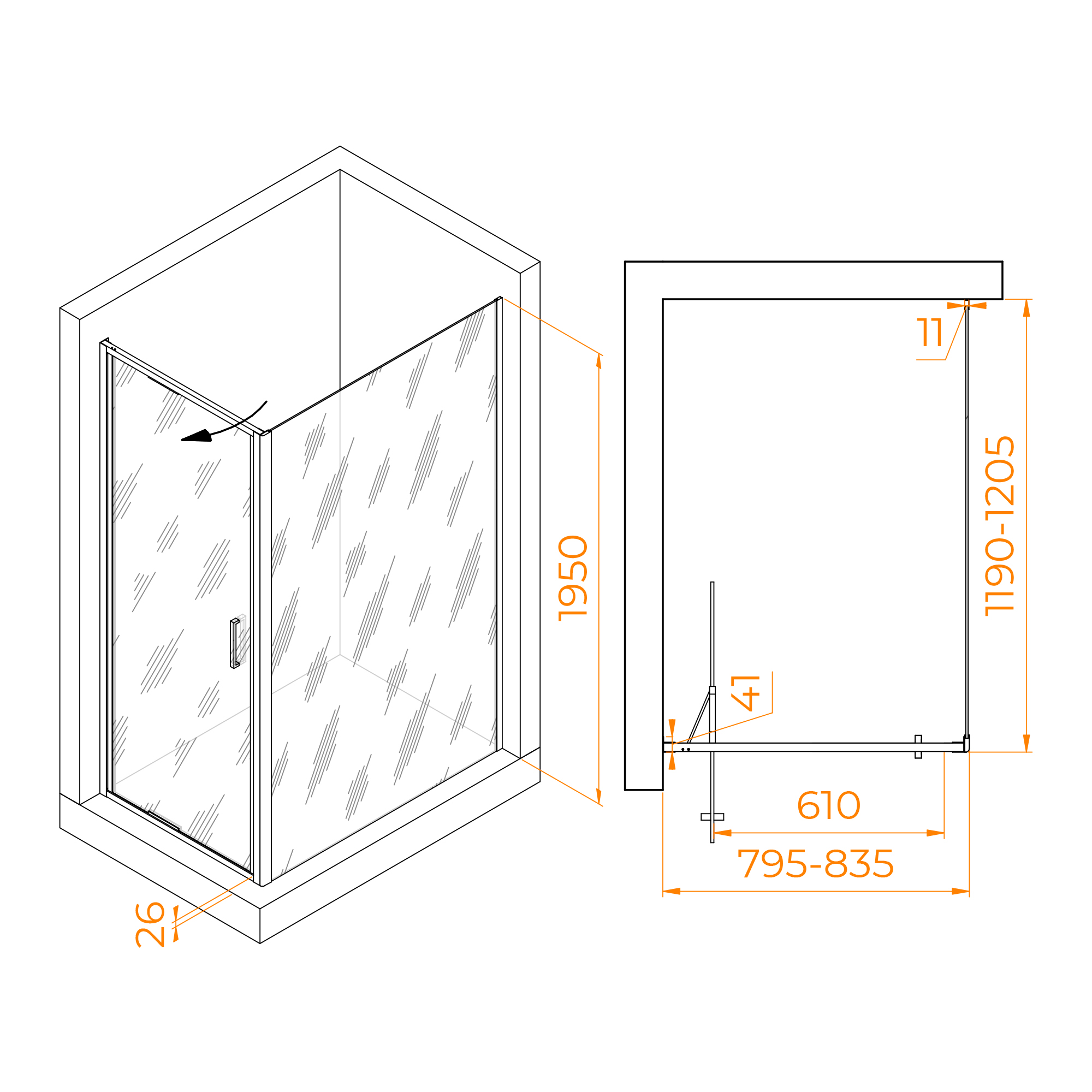 - Размеры с диапазоном регулировок: (795-835)x(1190-1205) мм