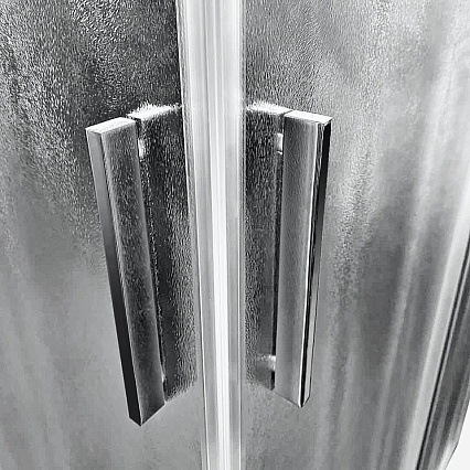 Квадратный душевой уголок Garda с угловым входом это надежное и комфортное решение для создания душевой зоны современной ванной комнаты. Использование двух раздвижных дверей позволяет создать комфортную ширину входа, при этом экономя пространство ванной комнаты. За счет высоты 1900 мм пространство ванной будет надежно защищено от брызг, двойные металлические ролики обеспечивают плавный ход дверей и долговечность. Нижние ролики отстегиваются для удобства чистки изделия. Профиль выполнен из анодированного алюминия, конструкция профиля позволяет регулировки до 20 мм по ширине и 20 мм по глубине. В изделиях используется только закаленное стекло стандарта EN12150-1 в исполнениях прозрачном или “шиншилла”.- Поставляется с покрытием профиля блестящий хром