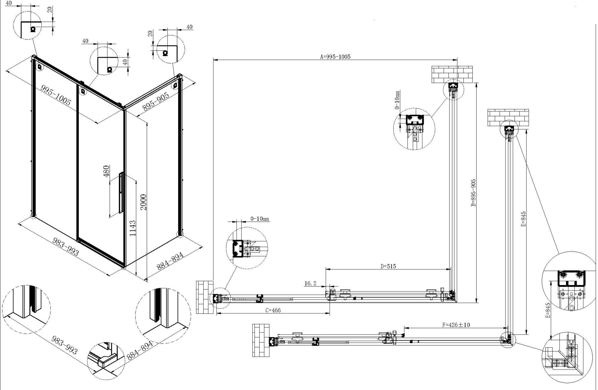 - Регулировочные размеры: 995-1005 x 895-905 мм