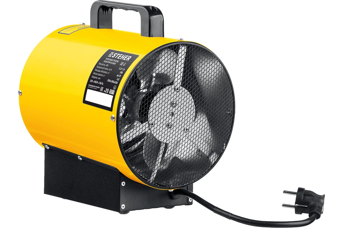 Электрическая тепловая пушка STEHER 3 кВт SE-5 - компактное устройство в цилиндрическом корпусе для направленного обогрева.