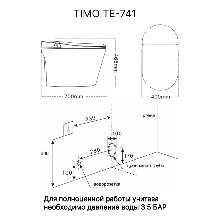 Приставной унитаз Timo ТЕ-741 с функцией биде