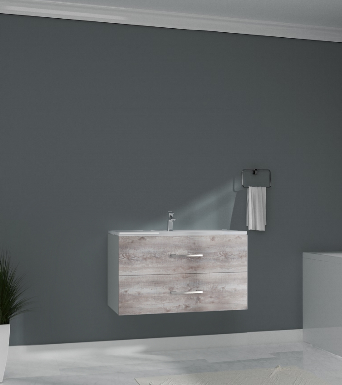 • фасад подвесной тумбы Marka One Mix 70 см для 2 ящ, ЛДСП, бетон