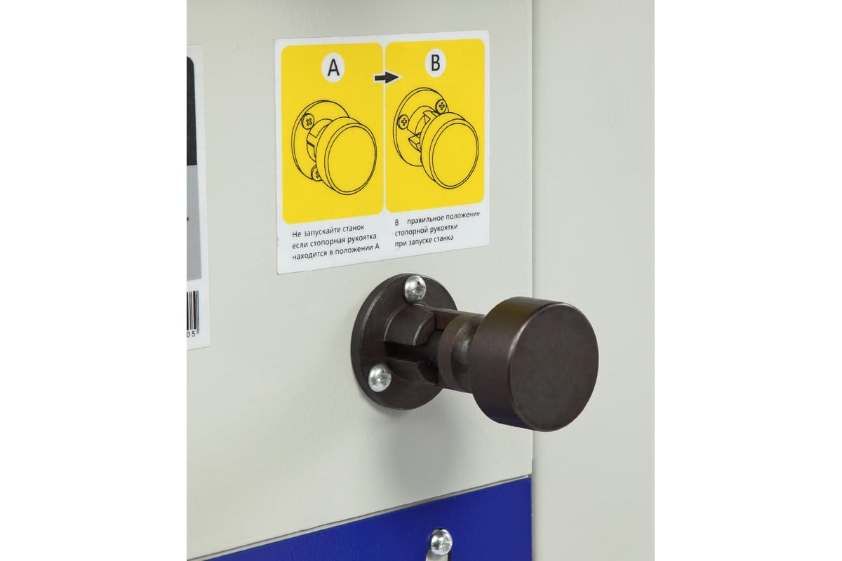 .Станок оснащен чугунным рабочим столом с пазом для установки углового упора или дополнительных приспособлений. Корпус изделия закрытый, изготовлен из листовой стали. Защитный кожух с патрубком для отвода стружки расположен на задней части параллельного упора. Станок оснащен прижимным узлом, который помогает в подаче заготовки к режущему инструменту и осуществляет дополнительную фиксацию.