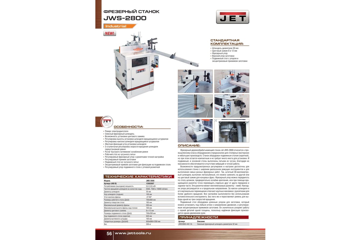 Фрезерный станок JET JWS-2800 1280200T является профессиональным оборудованием и эффективно применяется в сфере деревообработки. Фрезерный шпиндель легко заменяется в случае поломки или переоборудования модели для решения разнообразных задач фрезерования. Доступны три режима скорости - 5500, 7500 и 10000 об/мин, что дает возможность обрабатывать материалы различной плотности. Рабочий и подвижный столы изготовлены из чугуна, что гарантирует их прочность и устойчивость к износу. Возможность изменения наклона фрезы в диапазоне от -5 до 30 градусов значительно расширяет возможности машины. Выходная мощность агрегата составляет 3 кВт. Массивное основание препятствует вибрации и обеспечивает устойчивость станка в процессе эксплуатации. Подвижный стол имеет габариты 700х200 мм.