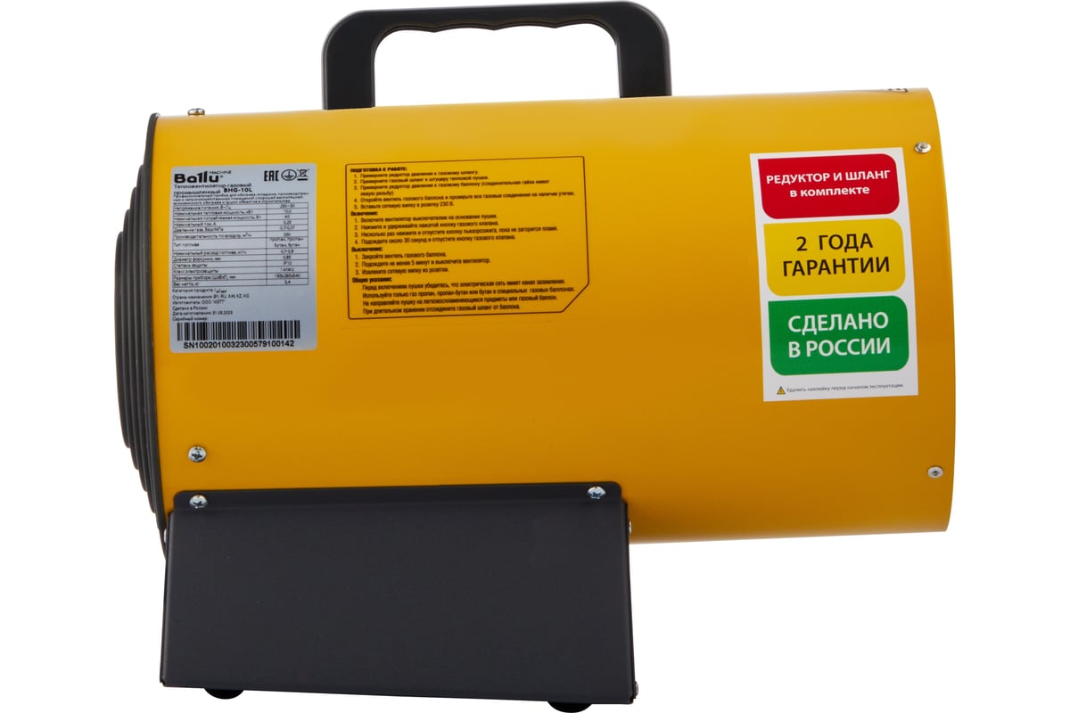 Тепловая пушка газовая Ballu BHG-10L НС-1275312 – это высокопроизводительные теплогенераторы, работающие на сжиженном газе пропане и пропан-бутане. Практически нечувствительны к резким перепадам температур и легко переносят транспортировку. Компактный металлический корпус газовой пушки обладает теплоотражающими свойствами и надежно защищен антикоррозионным покрытием, даже при использовании агрегата во влажных помещениях. Благодаря наличию многоуровневой защитной автоматики, тепловая пушка самостоятельно выключается при исчерпании запасов топлива и перекрывает подачу газа в случае погасания пламени или при перегреве. Мобильность газовой тепловой пушки серии URAL BHG-10L позволяет привести ее в рабочее состояние практически мгновенно.