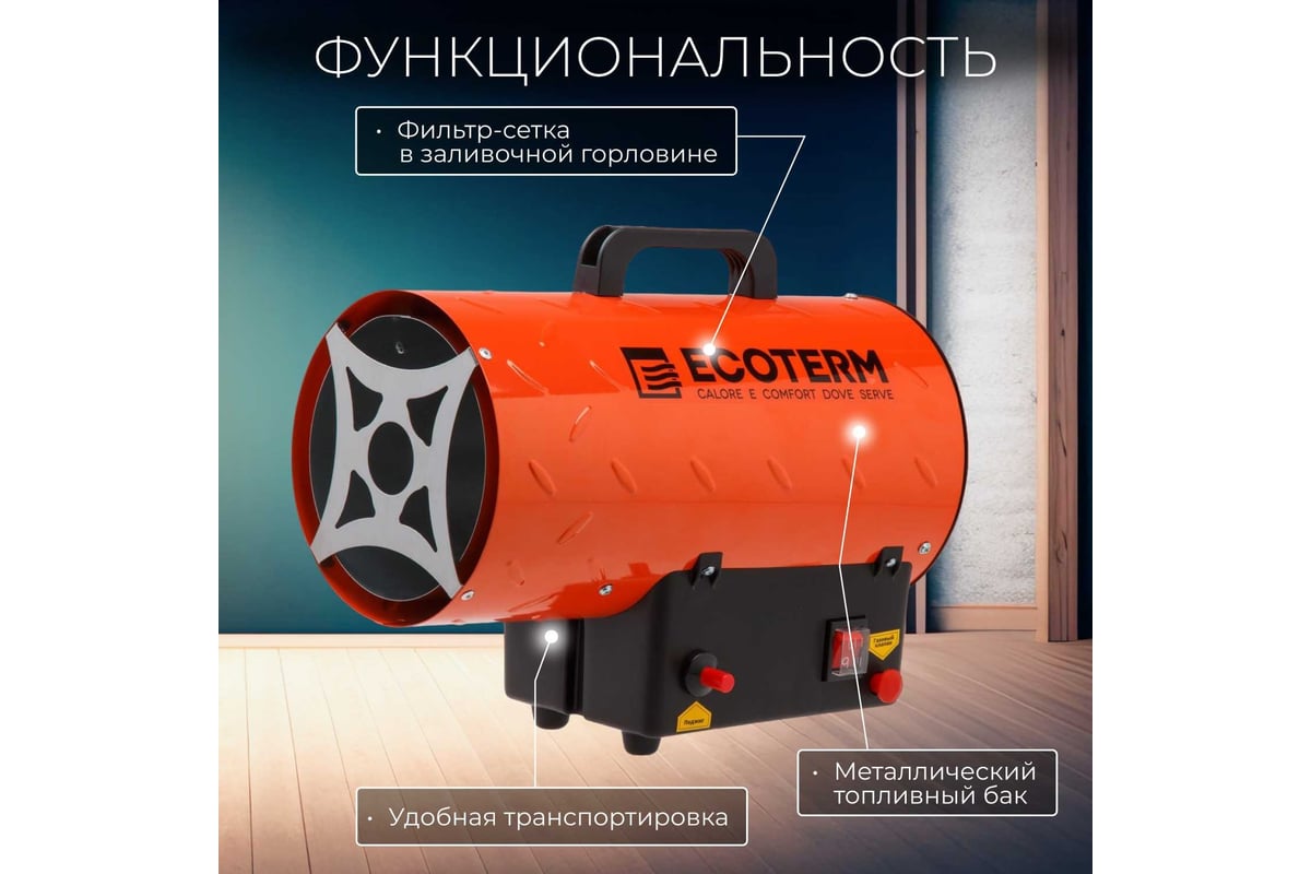Газовая тепловая пушка ECOTERM TERM GHD-151 подходит для отопления сельскохозяйственных построек и теплиц, мастерских небольшого размера со средней теплоизоляцией. Специально разработанная электроника предназначена для работы на нестабильных сетях и сетях с пониженным напряжением. Защитное отключение при отсутствии электроэнергии. Контроль наличия пламени. Конструкция оснащена ручкой для переноски. Объем отапливаемого помещения не менее 300 куб.м.