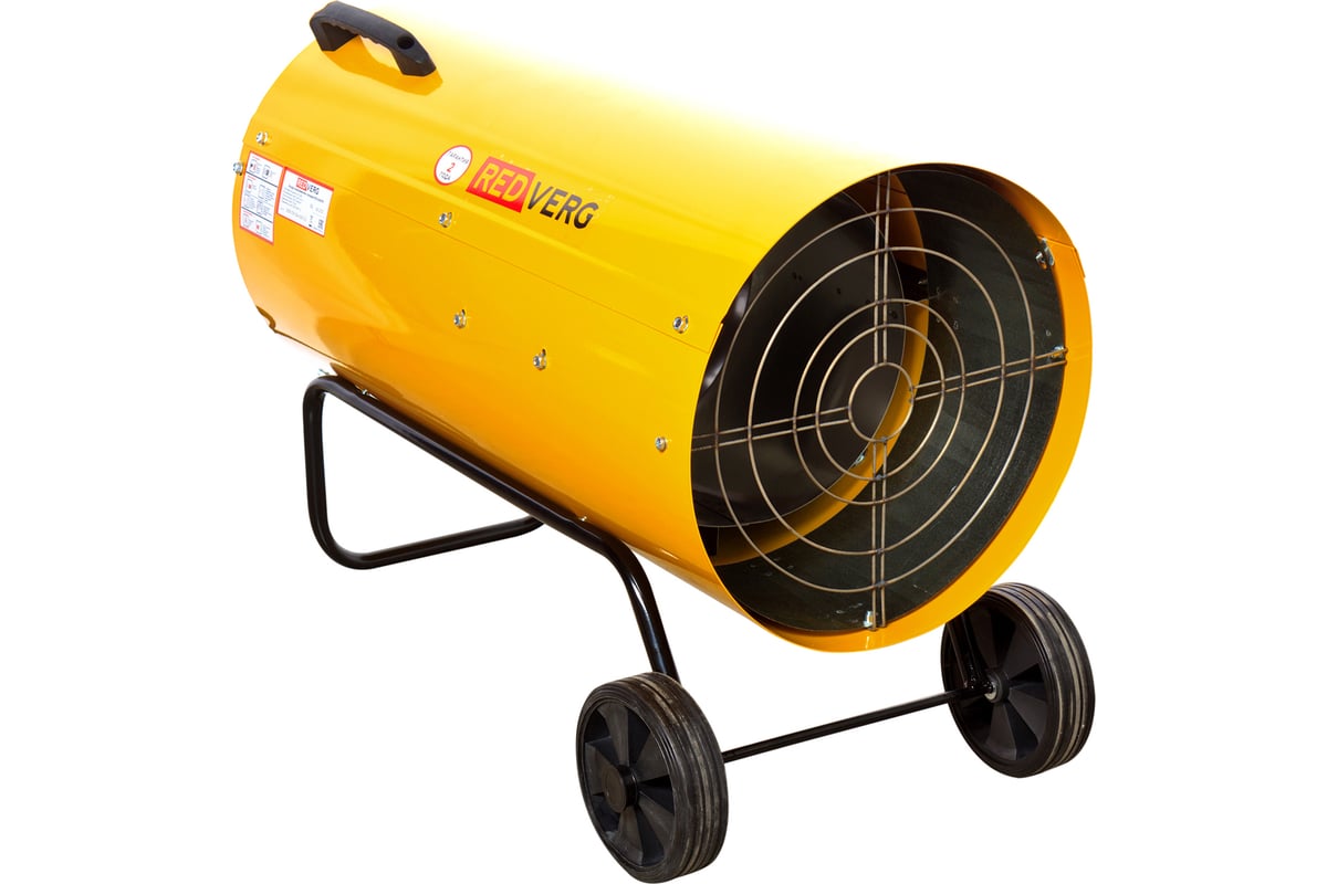 Газовый воздухонагреватель REDVERG RD-GH57R 6659859 имеет прочный корпус из металла. Удобную транспортировку прибора обеспечивают колеса и рукоятка. Воздухонагреватель мощностью 57 кВт применяется для обогрева нежилых помещений большой площади.
