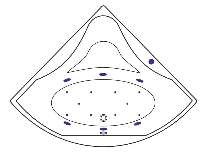 - Аэромассажная система (10-12 форсунок AERO-JET) с функцией регулировки интенсивности массажа