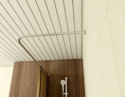 - Порядок установки карниза в ванной: 1. Собрать карниз и приставить к стенам. Найти нужное положение и наметить отверстия для дюбелей. 2. Просверлить отверстия, вставить дюбели. 3. Крепление снять с карниза и закрепить на стене с помощью шурупов-саморезов. 4. Закрепить на стене второе крепление вместе с карнизом и установленными на нём декоративными отражателями. 5. Зафиксировать положение карниза стопорными винтами. 6. Придвинуть декоративные отражатели вплотную к стене для обеспечения должного внешнего вида изделия.