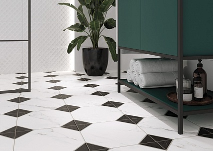 Коллекция керамогранита GRETTA формата 30х30 имитирует природный мрамор с классическими светло-серыми прожилками. Два варианта универсальной квадратной плитки с октагональным рельефом образуют интересные рисунки —чёрные мраморные вставки и цветочный орнамент в серых тонах. Универсальный материал подходит для отделки кухни, гостиной и коридора, балкона и ванной комнаты в современном и классическом стилях.