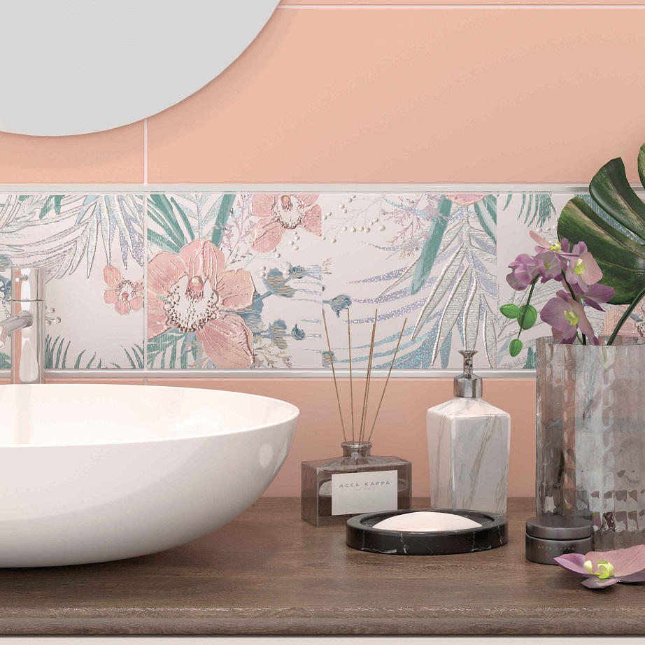 Нежная керамическая плитка Aurora — это по-настоящему весенние краски и мотивы. Пастельный голубой и зеленый, коралловый и нежно-розовый, серый и белый в сочетании с легкими флоральными узорами и мягкими полосками станут незаменимым решением для интерьера в романтическом стиле.