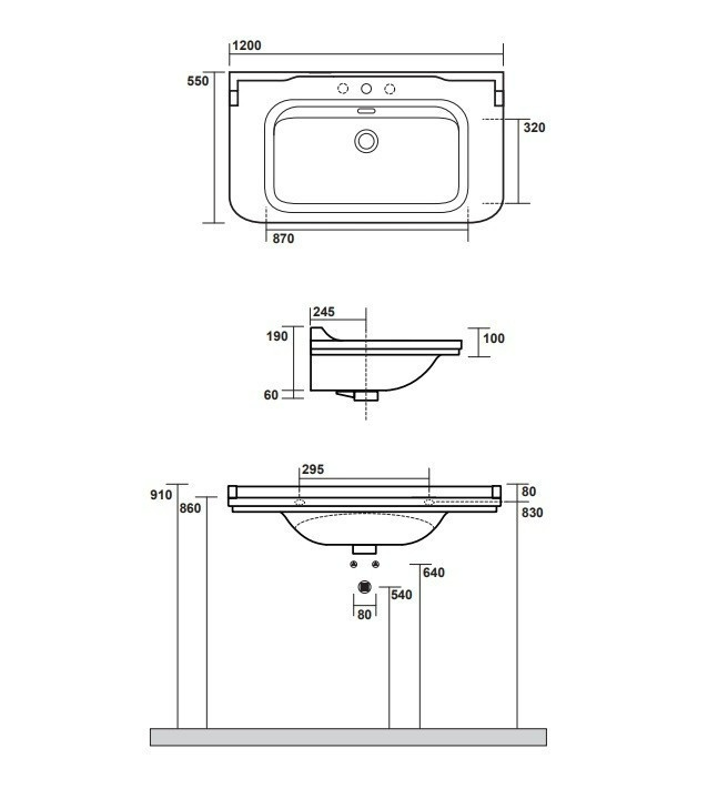 - Раковина Kerasan Waldorf 4144K1bi//cr 120 см (с 1 отв. или 3 отв. под смеситель)