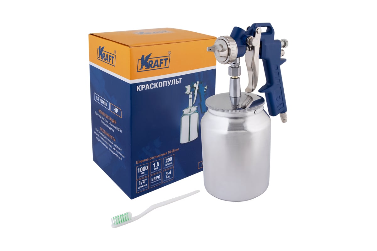Краскопульт KRAFT HP KT 707053 применяется для нанесения лакокрасочных материалов на различные поверхности.