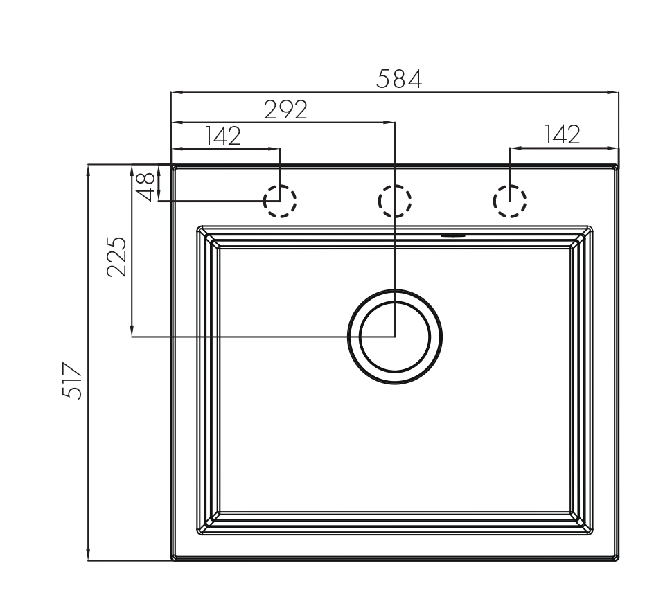 - Классическая кухонная мойка из литого мрамора квадратной формы.