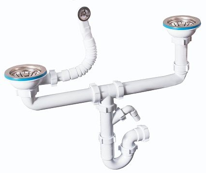 - Отводная арматура для двух разноуровневых чаш с выпусками 3 ½ ” (D=90мм) и переливом
