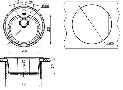 - Габариты изделия (ДхГхВ): 510х510х217 мм