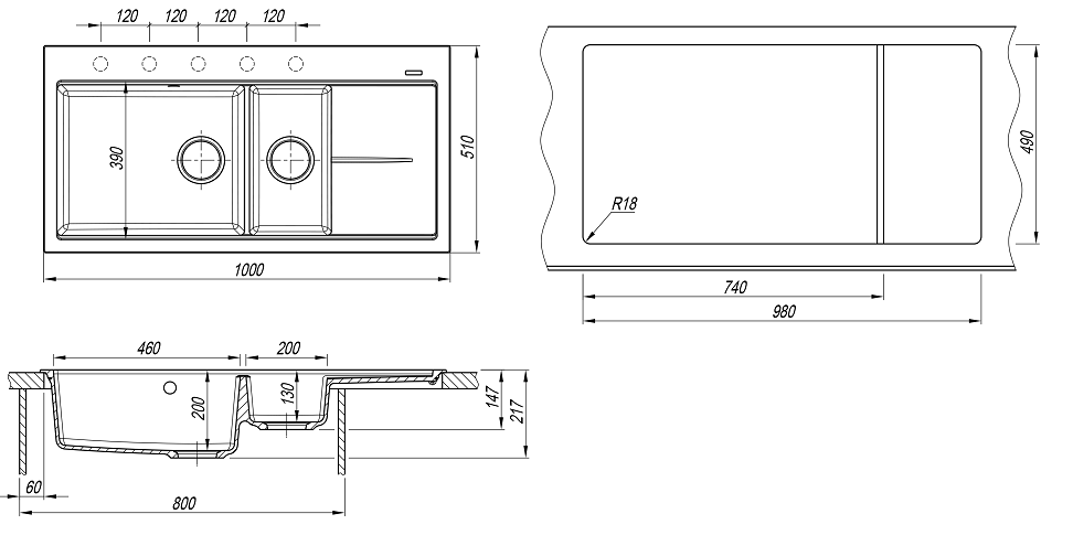 - Габариты изделия (ДхГхВ): 1000х510х217 мм