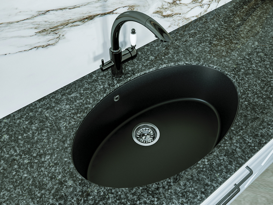 - Мойка для монтажа под столешницу с овальной чашей в блок 80