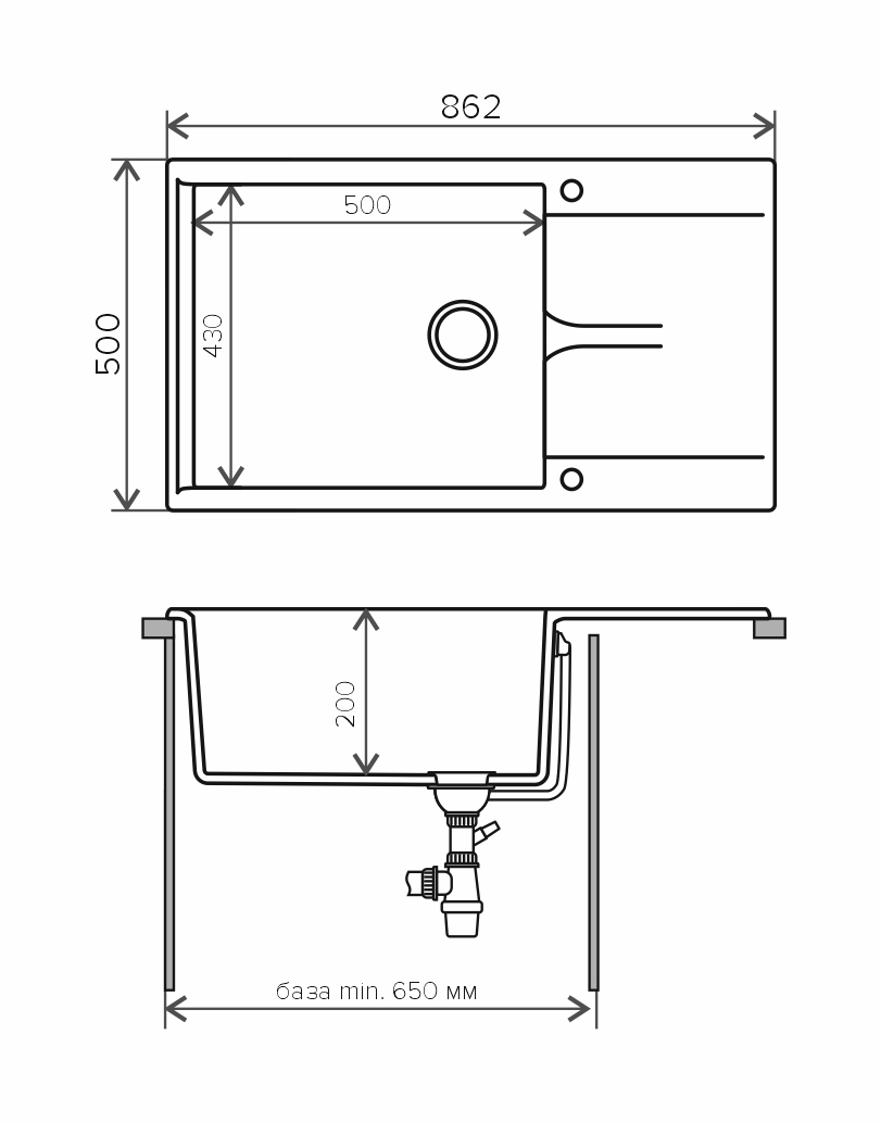 Широкий бортик для смесителя и кухонных аксессуаров, возможность установки дозатора. Модель легко поместится в тумбе шириной от 60 см.