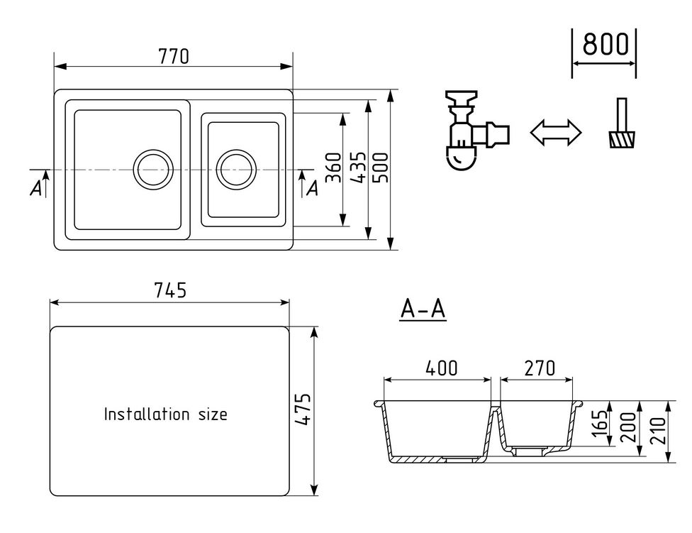 - Установочный проем 745 х 475 мм