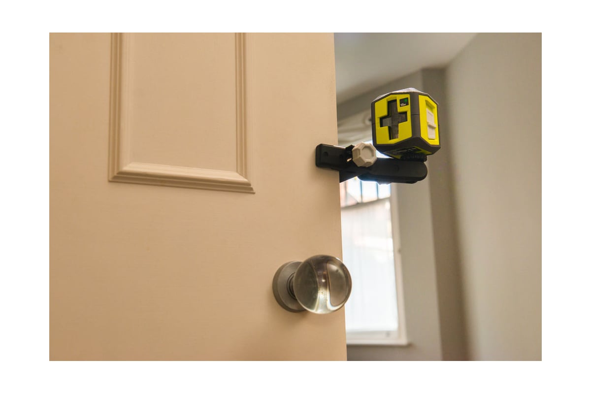 Нивелир комплектуется регулируемым зажимом, который крепится к внутренней резьбе 1/4 дюйма в основании нивелира. Зажим можно прикрепить к любой поверхности в доме, например, к оконной раме или стулу, для более удобного выполнения задач.
