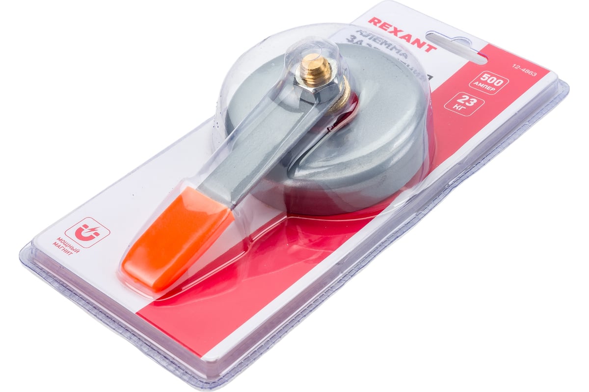 Магнитная клемма заземления 500 A REXANT применяется для подсоединения нулевого провода к свариваемой детали.