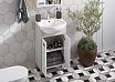 Компактная тумба в размере 50 включает в себя два фасада-створки, петли с доводчиками и регулируемую по высоте полку. Тумбы установлены на металлические ножки и укомплектованы практичными врезными ручками, которые очень удобны в использовании. Боковые стенки и фигурная планка под раковиной изготовлены из ламинированной, текстурированной влагостойкой ЛДСП в цвете дуб сомерсет, а фасады - из крашеной в белый цвет влагостойкой ЛДСП.