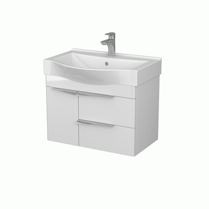 Мебель для ванной Акватон Беверли 65 в современном стиле, выполненная из влагостойкой ламинированной плиты и высококачественной MDF, обладает удобным функционалом. Слева за распашным фасадом-створкой находится вместительная ниша с регулируемой полкой из влагостойкой ламинированной плиты, а справа размещены два ящика, в которых поместятся необходимые в ванной комнате принадлежности. Петли снабжены доводчиками, а ящики – интегрированной системой плавного закрывания для комфорта и удобства потребителя. Изящные ручки в цвете глянцевый хром идеально сочетаются с линиями белоснежной керамической раковины Беверли бренда Santek. Тумба окрашена в белый цвет с высокой степенью глянца, что обеспечивает изделию привлекательный внешний вид, а также износостойкость и долговечность.