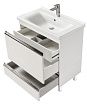 Тумбы Капри укомплектованы вместительным внешним ящиком с направляющими плавного выдвижения. За фасадом внешнего ящика находится удобный внутренний ящик, открывающийся с помощью системы push-to-open. Внутренний ящик идеален для хранения необходимых мелочей, которые всегда должны быть под рукой.Раковина бренда Santek Миранда, выполненная из белоснежного фарфора, обладает вместительной чашей, изящным бортиком и современным дизайном. Тумба выполнена из влагостойкой ламинированной плиты, окрашенной полиэфирной краской с ультрафиолетовым отверждением.