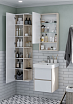 Мебель для ванной Акватон Сканди 45 см изготовлена из влагостойкой ламинированной ВДСП, а фасады из ВЛДСП в покраске белый глянец.