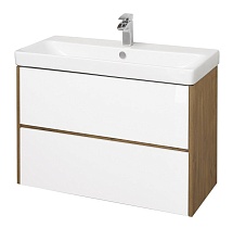 - Тумба комплектуются новой современной раковиной Адриана от бренда Santek с удобной чашей.