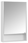 Зеркальный шкаф Акватон Сканди 55 см включает регулируемые стеклянные полочки за зеркальным фасадом и открытую нишу для косметических средств, которые всегда должны быть под рукой