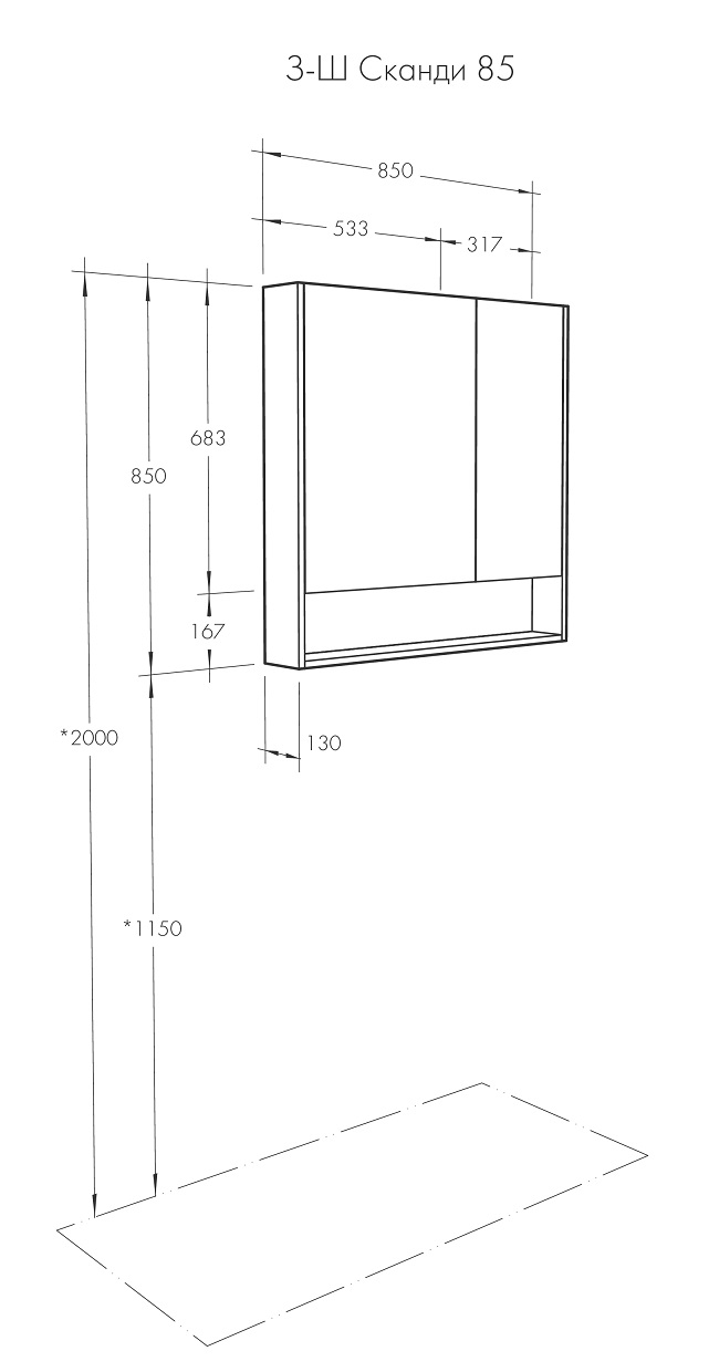 Размеры шкафа / зеркала