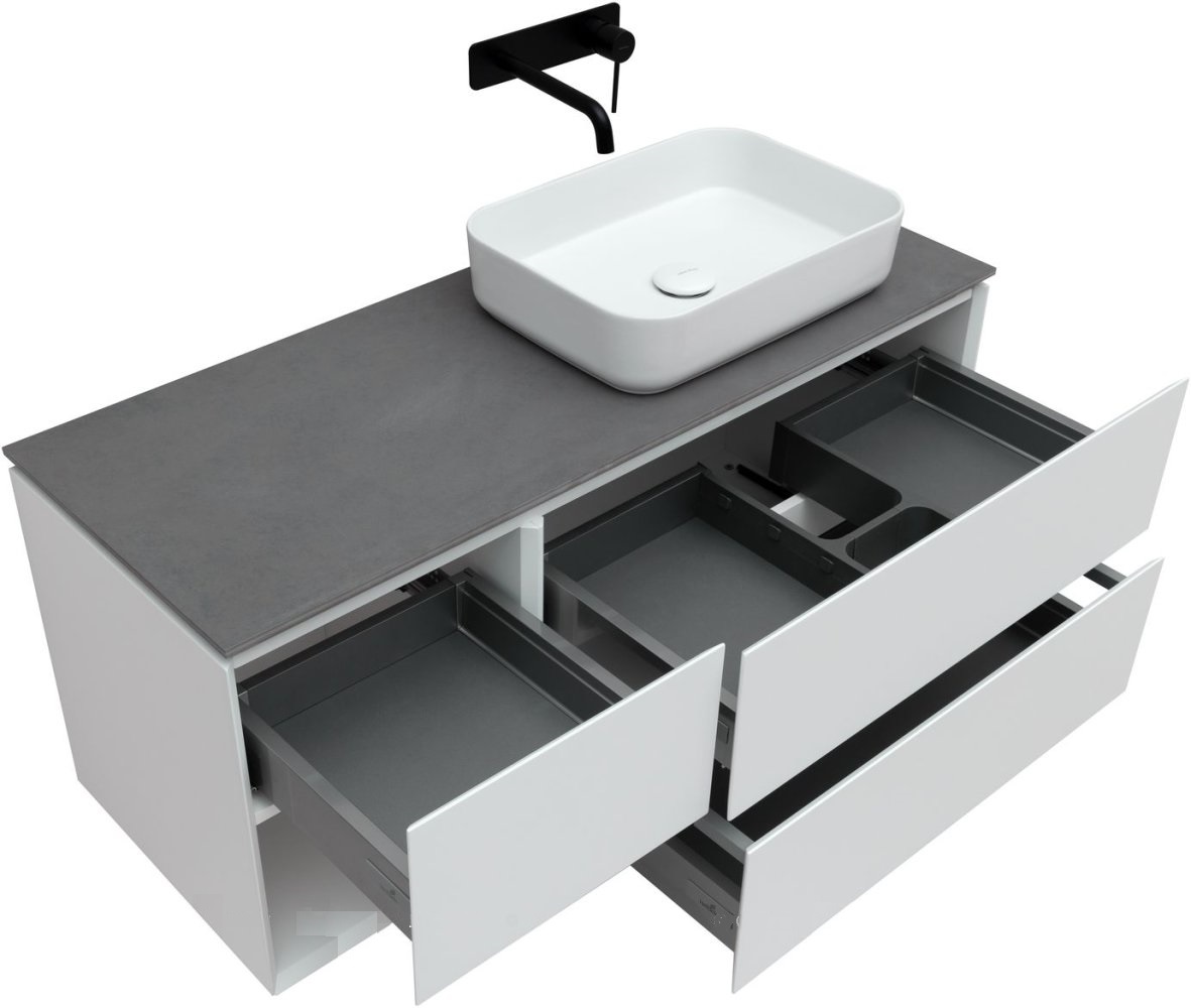 Мебель коллекции FANTASY – это гармоничное сочетание матовых оттенков фасадов, правильных форм, тщательно подобранных материалов. Подвесной монтаж, вариативность цветовых решений мебели и столешницы позволяет создавать элегантные и стильные интерьеры ванных комнат. Оригинальные интегрированные ручки и увеличенная толщина стенок до 25 мм, что усиливает прочность корпуса – эффектные дизайнерские решения, которые не лишают мебель практичности.