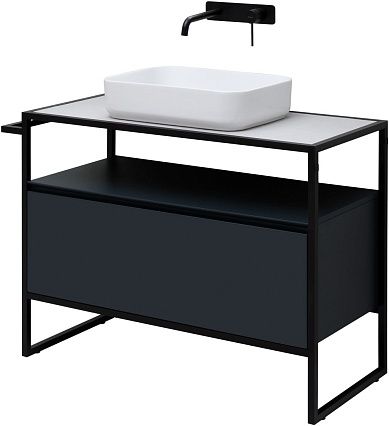 - Стильный каркас тумбы выполнен из металла, имеет брашированную поверхность с нанесением цвета путем анодирования