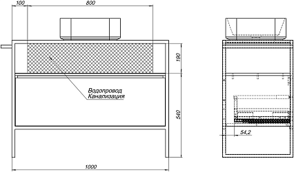 Оригинальная коллекция в стиле лофт. Тумбы комплектуются столешницей из керамогранита, которая устанавливается внутрь профиля.
