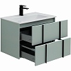 Изюминкой коллекции являются стильные и оригинальные металлические ручки, которые образуют единую линию с ножками тумбы. Сочетание цветов отделки фасадов и декоративных элементов позволяют получить неповторимые интерьерные решения. Разнообразие вариантов для хранения: система органайзеров для тумбы, выдвижные ящики, помогают организовать пространство ванной комнаты с комфортом.