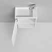 Внутреннее покрытие выполнено в современном цвете Anthracite. Встроенная керамическая раковина белоснежного цвета оснащена специальным бортиком для защиты от пролива воды за мебель.