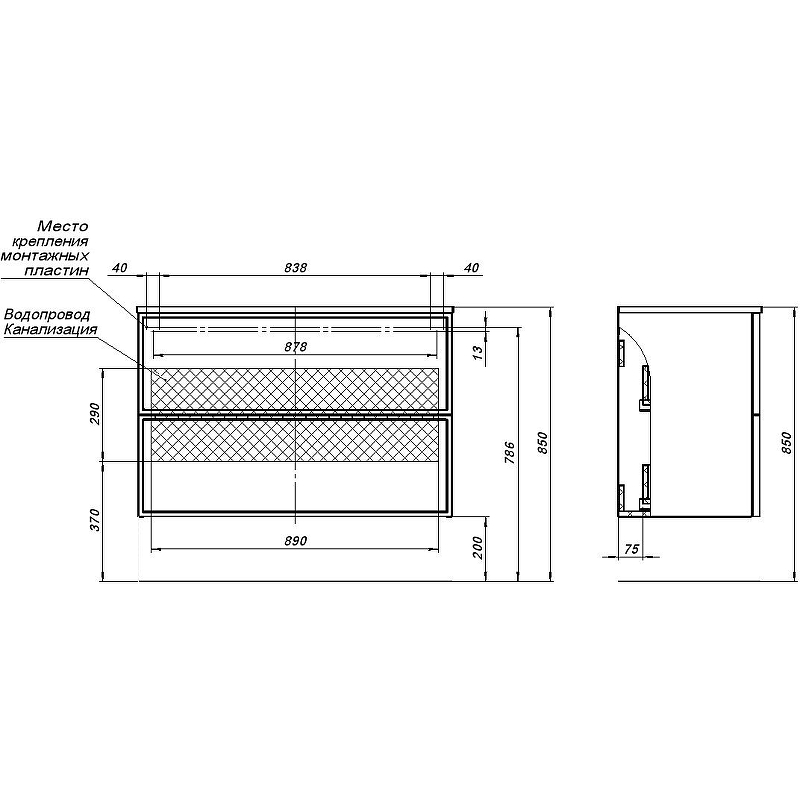 - В столешнице Арт предусмотрены 2 отверстия: под слив раковины и под смеситель с установкой на столешницу. Расположение смесителя – справа от чаши раковины