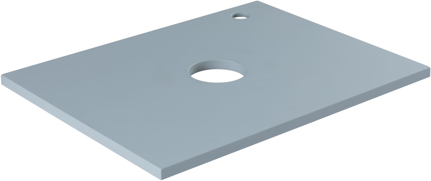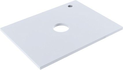 - В столешнице Арт предусмотрены 2 отверстия: под слив раковины и под смеситель с установкой на столешницу. Расположение смесителя – справа от чаши раковины